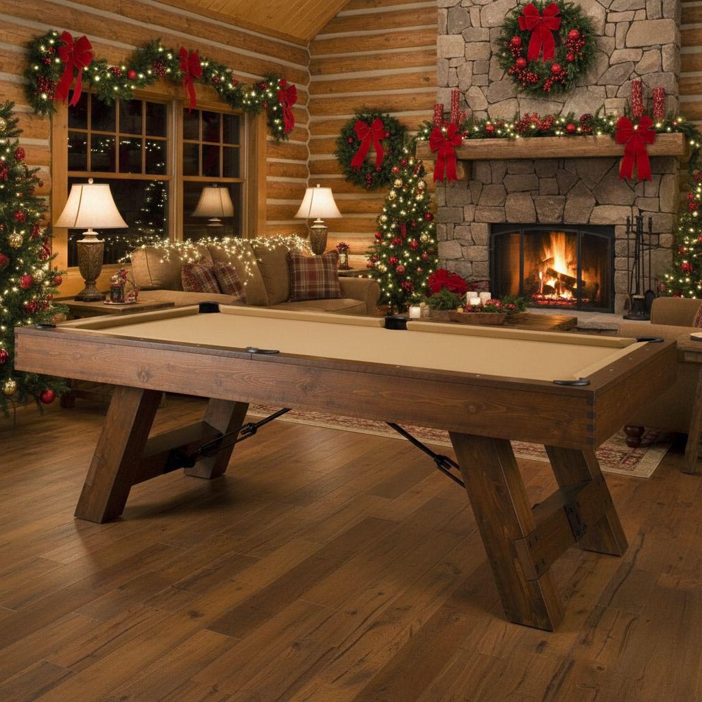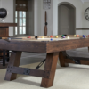 The Savannah is the original farm style pool table with turn of the century aesthetics. The authentic metal turnbuckles and elemental metal rings have an age-old furniture feel combining rustic and individual design elements. This pool table features recessed black hex bolt metal rail sights, a rich charcoal finish, and internal drop pockets.